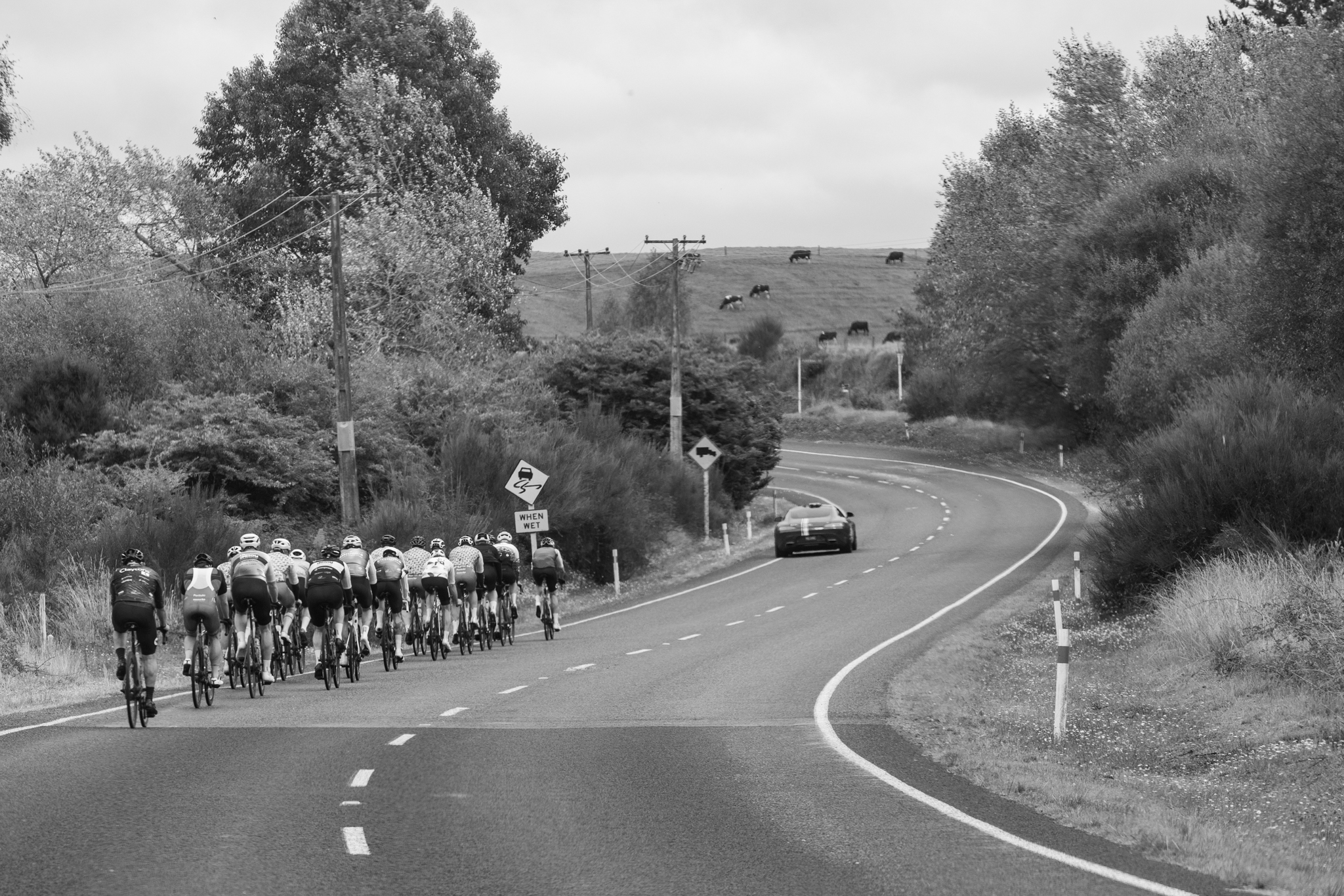 There were attacks flying, small groups forming, and some proper racing throughout the bunch. You could feel the energy lift as riders tested themselves and each other, pushing the pace and enjoying the chance to stretch the legs. It brought a different dynamic to the day - less about holding formation, more about having a crack and seeing what everyone had.